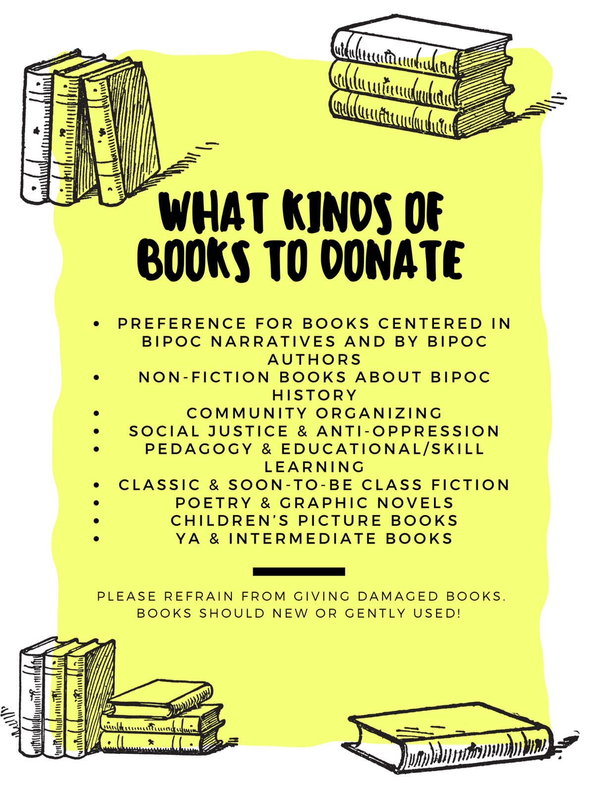 Drop off donated books in your neighborhood- click the time/location that works for you to email to get further details about how to drop off!